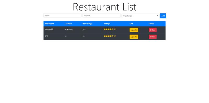 A Full-Stack web application,You can create restaurant,update it also delete.Ive includet a star rating for each restaurant and you can have a view of each restaurant with star rating and coments